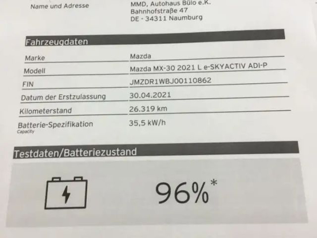Voertuiggevens van deze Mazda MX-30